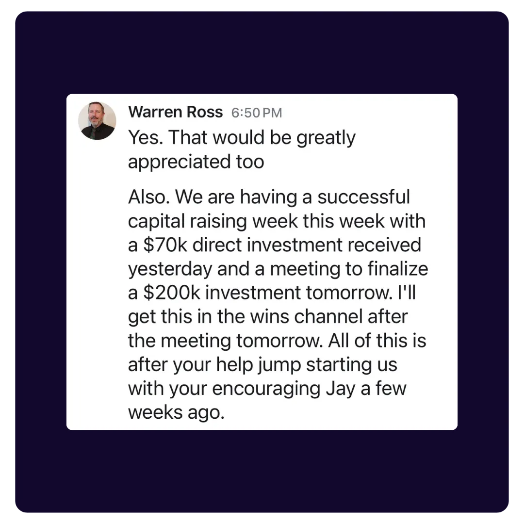 "Since joining, our investors have signed over 9-figures. So it's been very helpful."