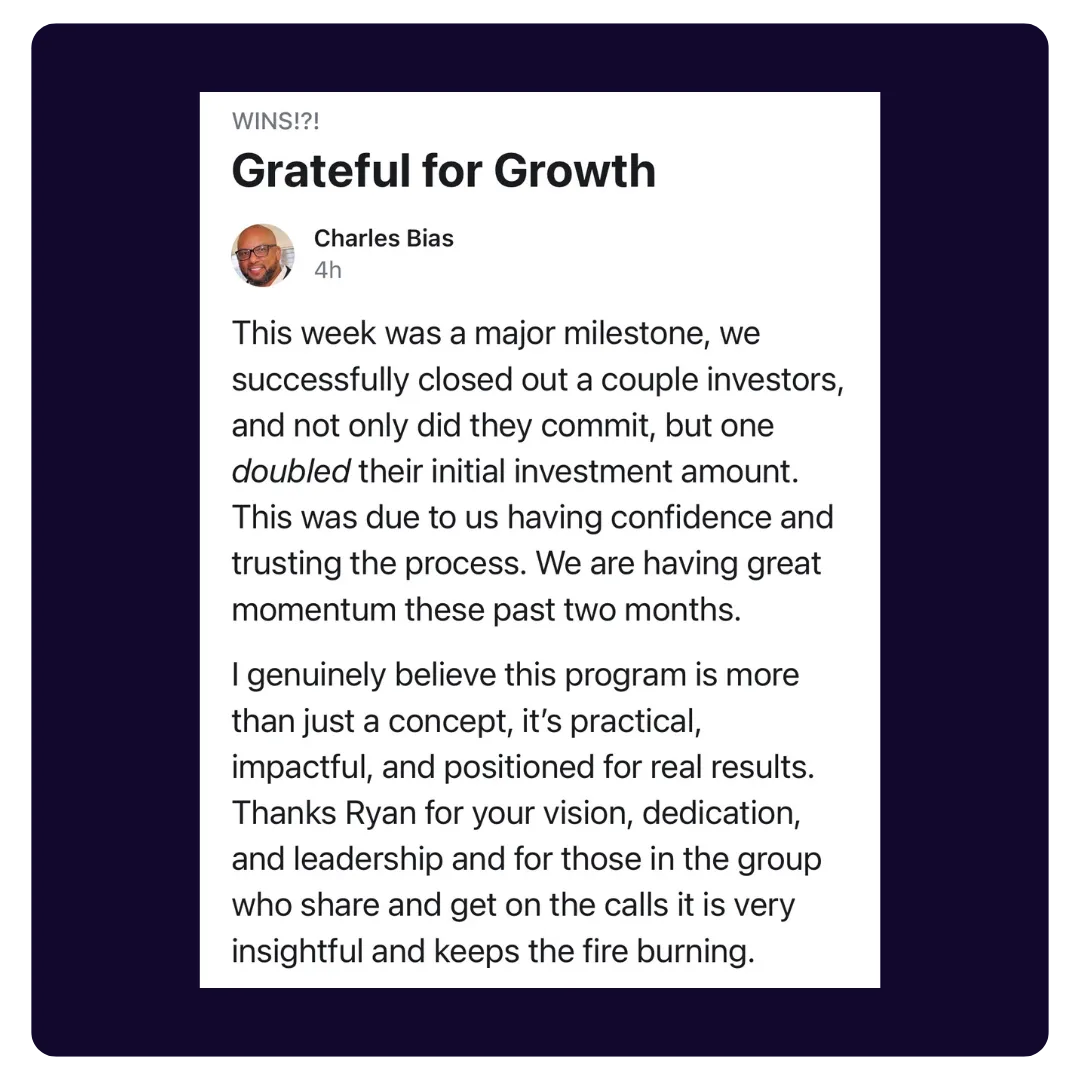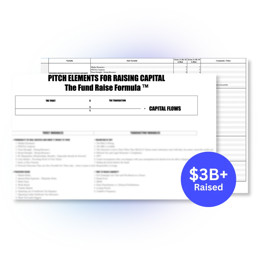 Real World Applications: Stepping you out of simple theory into execution like the Billionaire Battle Commander that you are. Applying The Fund Raise Formula™ equips you to strategically build and strengthen investor trust. With real-world examples like Ray Dalio and Cathie Wood as guidance, you learn how to cultivate credibility, transparency, and an emotional connection so you stand out among your peers; just like the investing titans do all the time. The Fund Raise Formula™ teaches you concrete steps, such as demonstrating competence and consistency, openly communicating about risks, and tying your investment thesis to what truly matters to investors—so you can turn hesitation into enthusiasm and earn investor commitments on God Mode.